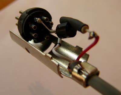 - Solder the 'signal' conductor to the pin on the DIN plug.