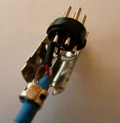 - Strip the cable and cut the various conductors to the correct length. Note that the 'ground' conductor needs to connect to the metal outer piece of the DIN connector.