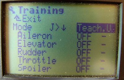 To stop this from happening the Mode setting should be altered to 'Off'. This will not alter the saved channel assignments for the control functions. When it is again desired to use training mode just alter the Mode back to Teach U.